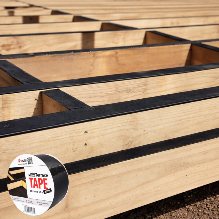 Tectis Sitko Terrace Tape – tai aukštos kokybės, vienpusė butilo juosta, skirta terasų lagių ir konstrukcijų apsaugai nuo drėgmės. Ji sukuria patikimą hidroizoliacinį sluoksnį ant medinių paviršių, apsaugo nuo vandens prasiskverbimo ir padeda išvengti medienos puvimo bei konstrukcijos pažeidimų.